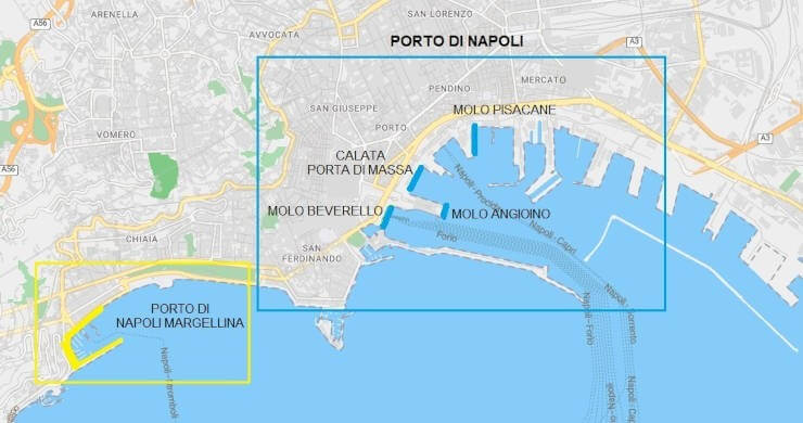 Calata Porta Massa, Molo Immacolatella Vecchia y Molo Calata Piliero, por el contrario, son puntos de atraque para ferries --> evalúa las opciones de aparcamiento en el puerto de Nápoles Calata di Massa.