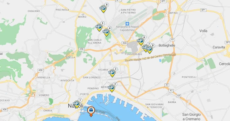 ¿Estás buscando un aparcamiento cerca del puerto de Nápoles? ¡Ordena los resultados de búsqueda por distancia desde los muelles de embarque! Cada aparcamiento cuenta con un práctico mapa con geolocalización del área de estacionamiento seleccionada. Una vez realizada la reserva, recibirás un cupón de MyParking con los números de contacto del aparcamiento y la dirección exacta.